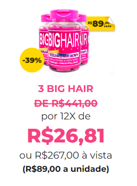 Promoção do Big Hair por tempo limitado com cupom de desconto em novos pedidos direto da fábrica no site oficial!